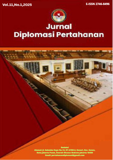 Vol. 11 No. 2 (2025)Edisi Volume 11 Nomor 2 Tahun 2025 Jurnal Diplomasi Pertahanan berfokus pada tema Diplomasi Militer. Artikel-artikel dalam edisi ini membahas peran militer sebagai instrumen diplomasi, strategi kerja sama pertahanan, serta dinamika hubungan internasional yang melibatkan kekuatan bersenjata. Kajian ini diharapkan dapat memperkaya pemikiran akademik dan memberikan kontribusi bagi penguatan strategi diplomasi pertahanan Indonesia dalam menghadapi tantangan global.